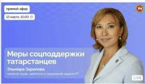 12 марта в 10:00 министр труда, занятости и социальной защиты РТ Эльмира Зарипова в прямом эфире расскажет о мерах поддержки семей с детьми, участников СВО, пожилых людей и актуальной ситуации на рынке труда. Присоединиться к трансляции можно во «ВКонтакте».