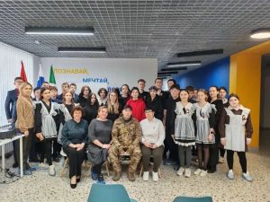 В Молодежном центре Тукаевского района прошла теплая и искренняя встреча. В гостях у местных школьников и волонтеров побывал боец специальной военной операции с позывным «Бабай», прибывший в родные края в краткосрочный отпуск.